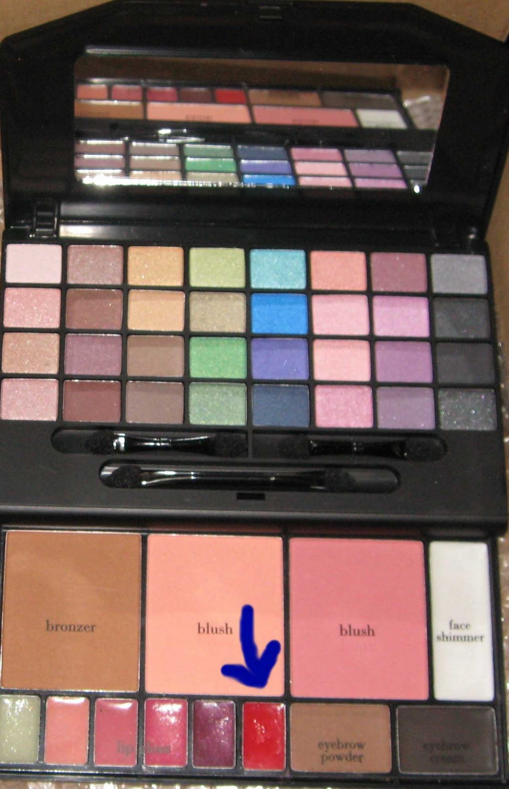 There is another lip colour I'm adding to this review, it is the deep red gloss in elf's Make-Up Clutch. Here's a photo (just follow the pretty blue arrow).